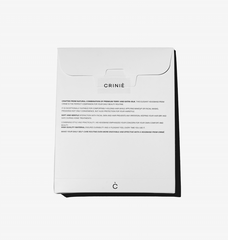 Crafted from natural combination of premium velour cotton and satin, this elegant headband from Crinié is the perfect companion for your daily beauty routine. It is exceptionally suitable for comfortably holding hair while applying makeup or facial masks, providing not only convenience, but also protection for your hairstyle. Soft and gentle interaction with facial skin and hair prevents any irritation, keeping your hair dry and safe during home treatments. Combining style and practicality, his headband emphasizes your concern for your own comfort and beauty. High quality material ensures durability and a pleasant feel every time you use it. Make your daily self-care routine even more enjoyable and effective with a headband from Crinié.