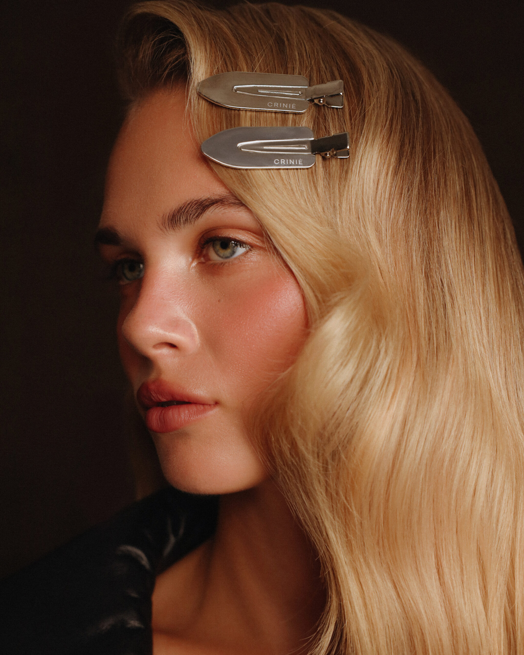- Secure each section with a CRINIÉ clip in the desired area — the textured inner side ensures a firm hold without damaging the hair.
